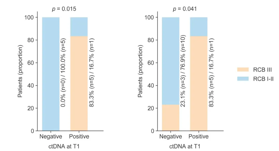 ctDNA清除与PEPI(左)和RCB(右)的关联