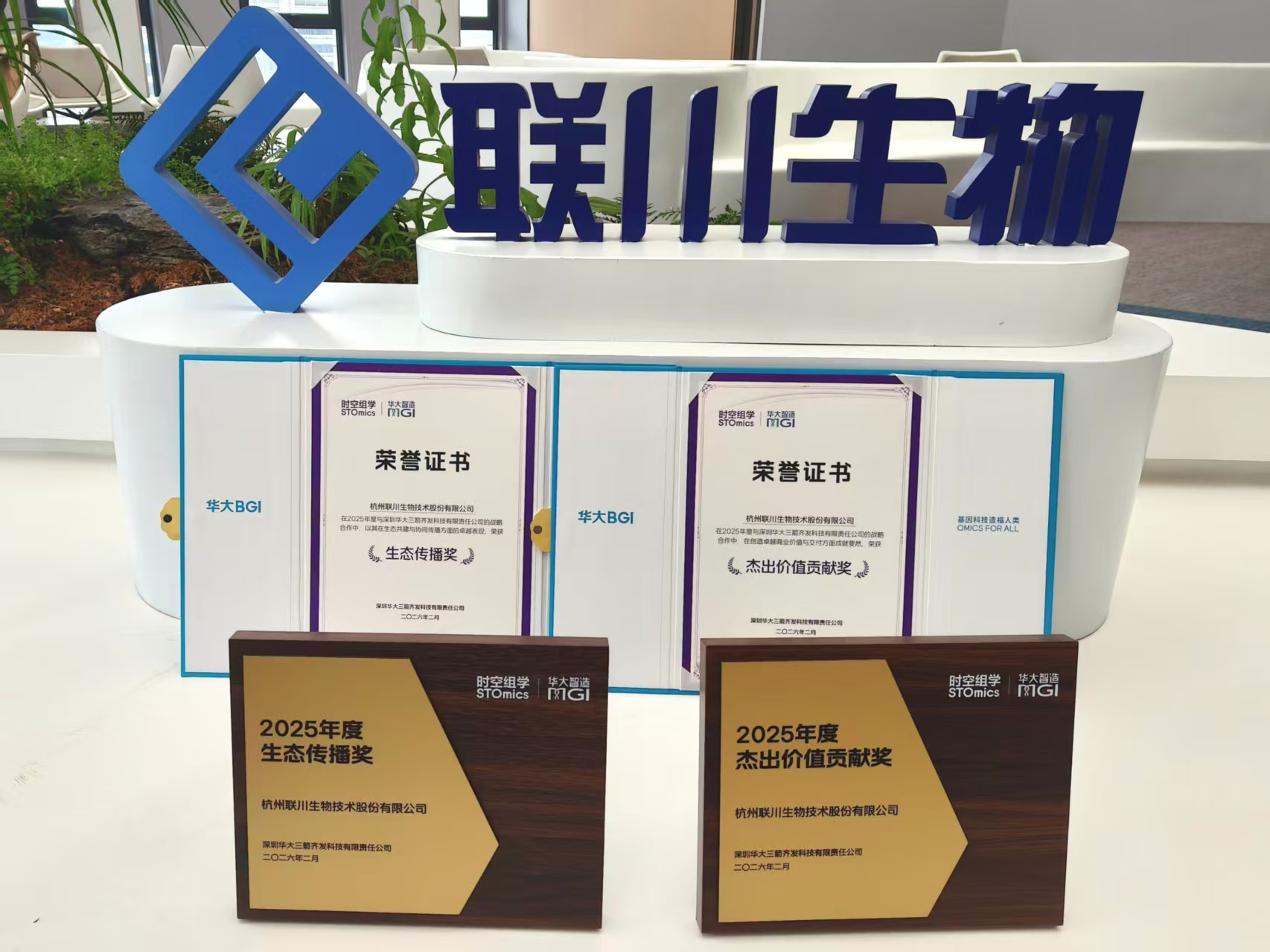 近日,在时空组学领域年度生态伙伴评选中,杭州联川生物技术股份有限公司凭借卓越的市场引领能力、稳定的高标准交付体系以及深度生态协同贡献,从40余家合作伙伴中脱颖而出,一举斩获华大时空颁发的 “杰出价值贡献奖” 与 “生态传播奖” 两项重磅荣誉。