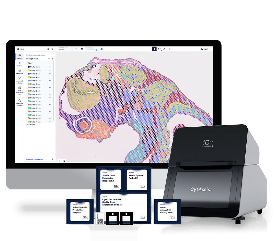 10x Visium CytAssist通过自动化探针转移技术,将标准载玻片上FFPE、冰冻包埋等多类组织切片的转录组信息精准捕获至Visium捕获玻片,无需预实验且操作简便,每次运行1小时内可处理至多两张切片,不仅降低样本质控要求,支持先染色选优质切片再分析,还提供多种捕获面积选择,全流程自动化集成使结果稳定可靠,大幅拓展了空间转录组研究的样本范围与应用场景。
