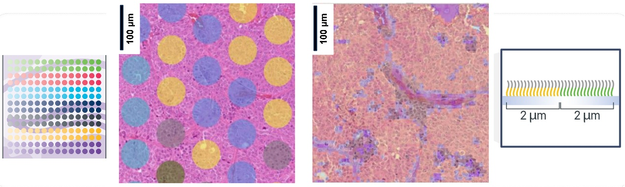 10x Visium HD作为高清分辨率的高通量空间转录组技术,将捕获分辨率提升至单细胞级别,能够在保持高通量、全转录组检测的基础上,实现对组织内精细空间结构的精准解析。它既保留了大规模、全基因组水平的转录本检测能力,又通过高密度条形码阵列大幅提升空间定位精度,可清晰揭示细胞边界、亚区域微环境、细胞邻近关系等细微表达特征,真正实现“高通量检测”与“高清空间分辨率”的兼顾,为肿瘤异质性、免疫微环境等高精度空间研究提供强有力的技术支撑。